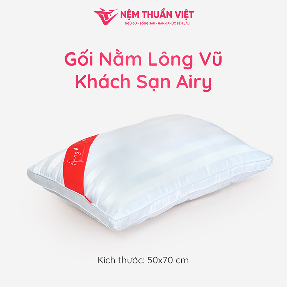 Gối nằm Lông Airy Vũ Thuần Việt  sẽ lựa chọn hoàn hảo dành cho những ai yêu thích sự bồng bềnh, êm ái trong từng giấc ngủ. Airy thuộc dòng gối  bán chạy của Nệm Thuần Việt sở hữu nhiều ưu điểm vượt trội êm ái, thoáng mát và giá thành vô cùng phù hợp.