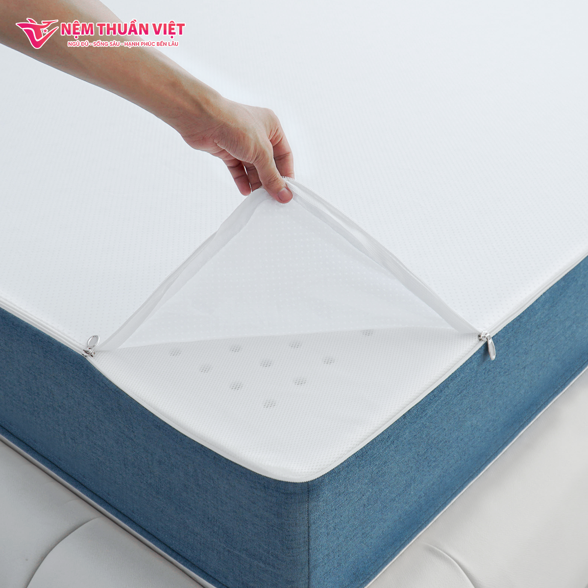 Bên trong là lớp áo lưới cố định nệm, giúp bảo vệ và tăng tuổi thọ của nệm, phía bên dưới được bố trí lớp chống trượt giúp nệm không bị xê dịch khi sử dụng. Ngoài ra, áo nệm được thiết kế dây kéo để người dùng có thể dễ dàng tháo rời và vệ sinh, vô cùng tiện lợi.